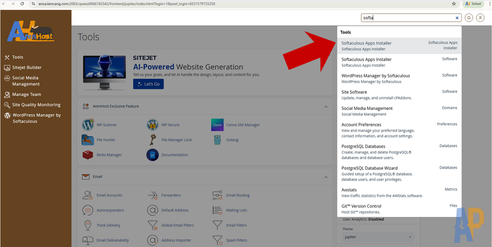 1. Login ke cPanel, lalu cari kolom Search Tools dan ketik Softaculous