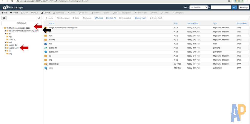 Sesuaikan dengan struktur folder di hosting Anda masing – masing (Panah Merah).